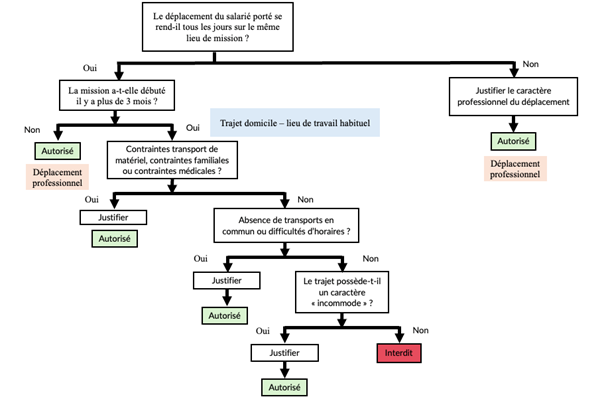 Pour mettre place les indemnités kilométriques, le plus simple est d’adopter un raisonnement par étapes comme illustré par l’arbre de décisions ci-dessous :